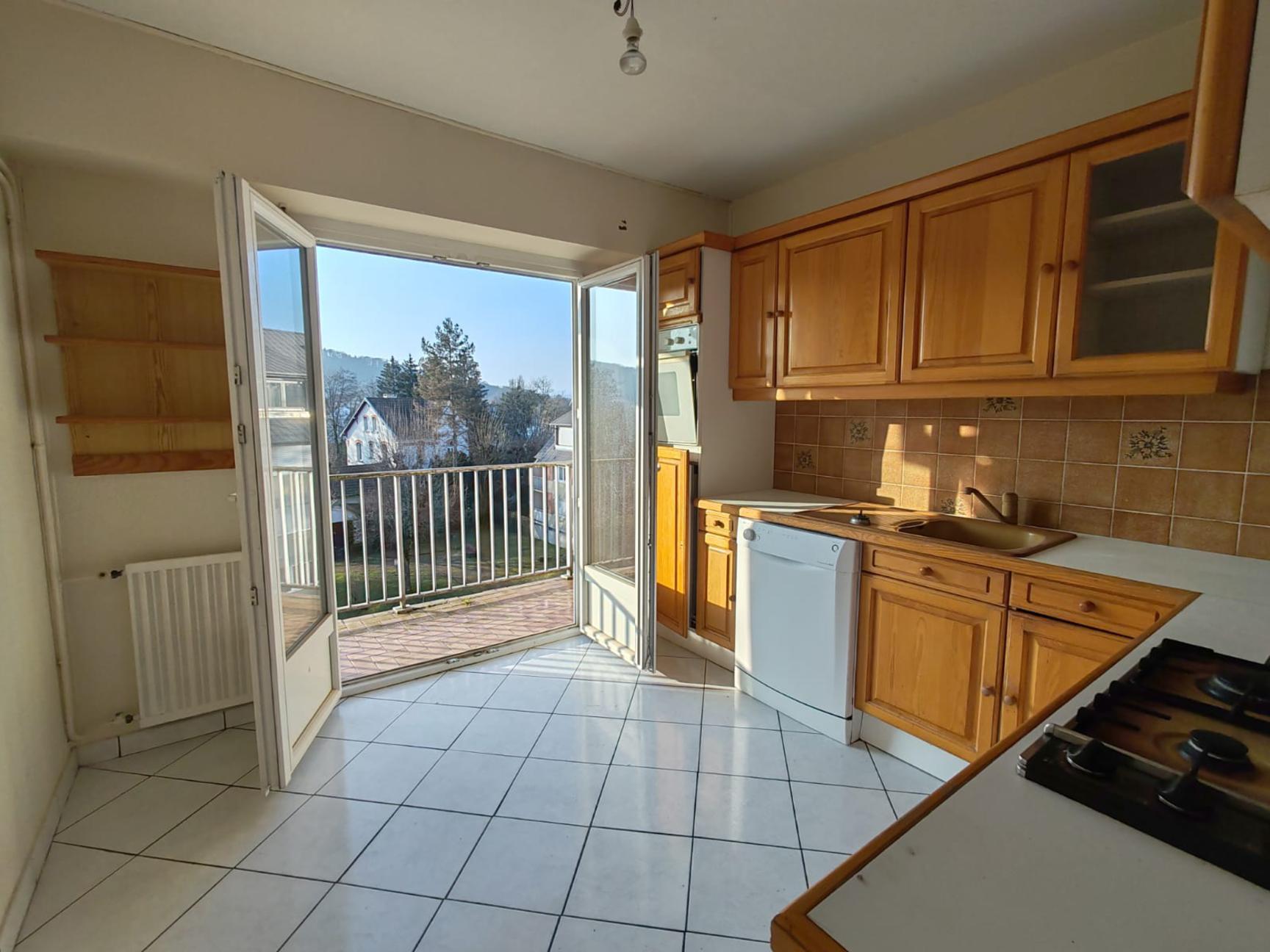 Situé dans un endroit calme, appartement au 4° étage avec ascenseur, comprenant une entrée, une cuisine avec balcon, un salon/séjour, 2 chambres, SDB, WC.