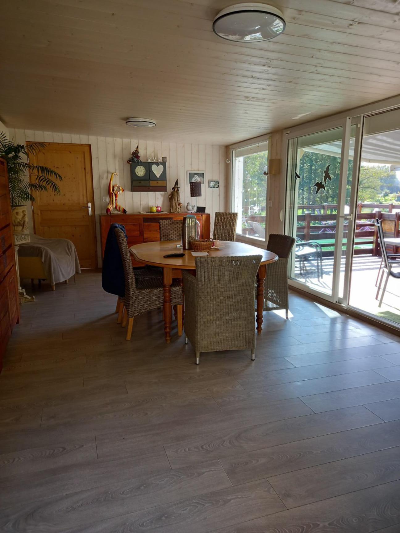 Sur environ 30 ares de terrain, située dans un bel environnement, au calme maison T5 comprenant une entrée, une cuisine équipée ouverte sur salon séjour avec un accès sur la véranda, la terrasse et la piscine. Exposition sud et Ouest. 3 chambres, SDB et salle d'eau, WC. Possibilité de vivre de plain pied. Etang attenant.