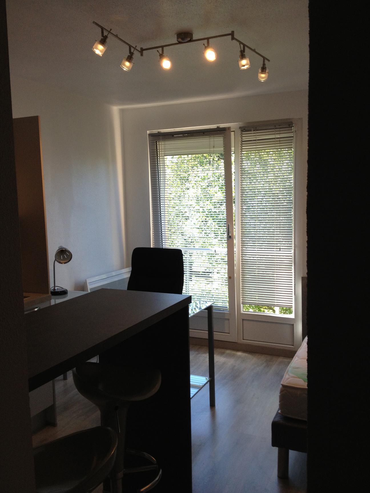 Studio meublé de 19m2 comprenant un coin cuisine équipée, une salle de bain avec WC, un coin lit et un bureau. Exposition Ouest avec une vue dégagée. Actuellement loué 450 euros plus 47 euros de charges.
